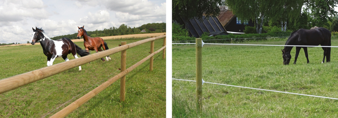 För permanenta hästhagar och ridbanor rekommenderar vi på Poda Stängsel ett fast slanstaket, försett med strömförande trådar på insidan av staketet. Om du är ute efter ett rent elstängsel (dvs. ett stängsel med endast strömförande trådar istället för slanor i trä) har vi bäst erfarenhet av Hippolux.